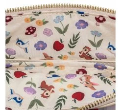 Pero sin duda lo más sorprendente es su diseño, con unos dibujos muy primaverales, que tienen a nuestra querida Blancanieves como protagonista, con un montón de animalitos a su alrededor, y también ese icónico Castillo de la Reina Grimhilde, que aparece tanto en la parte de delante como en la de atrás de este bolso. No dejes de ver todas las fotos para que veas cada uno de los cuidados detalles, como el estampado de su interior.